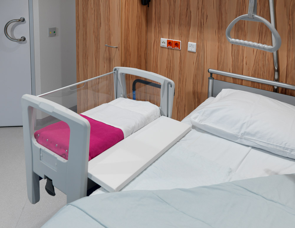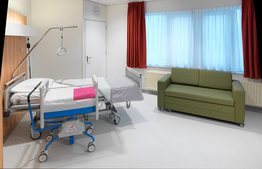 Het Antonius Ziekenhuis in Sneek vroeg ons om hun kraamsuites in te richten met de Mobycrib Matris en de Mobysofa. Negen suites zijn vanaf nu uitgerust met de Mobysofa, zo kan de partner van de bevallende moeder comfortabel blijven slapen. Daarnaast beschikt de afdeling over acht Mobycribs Matris. Dit babybedje is speciaal ontwikkeld voor rooming-in en geeft de moeder gemakkelijk toegang tot haar kindje.