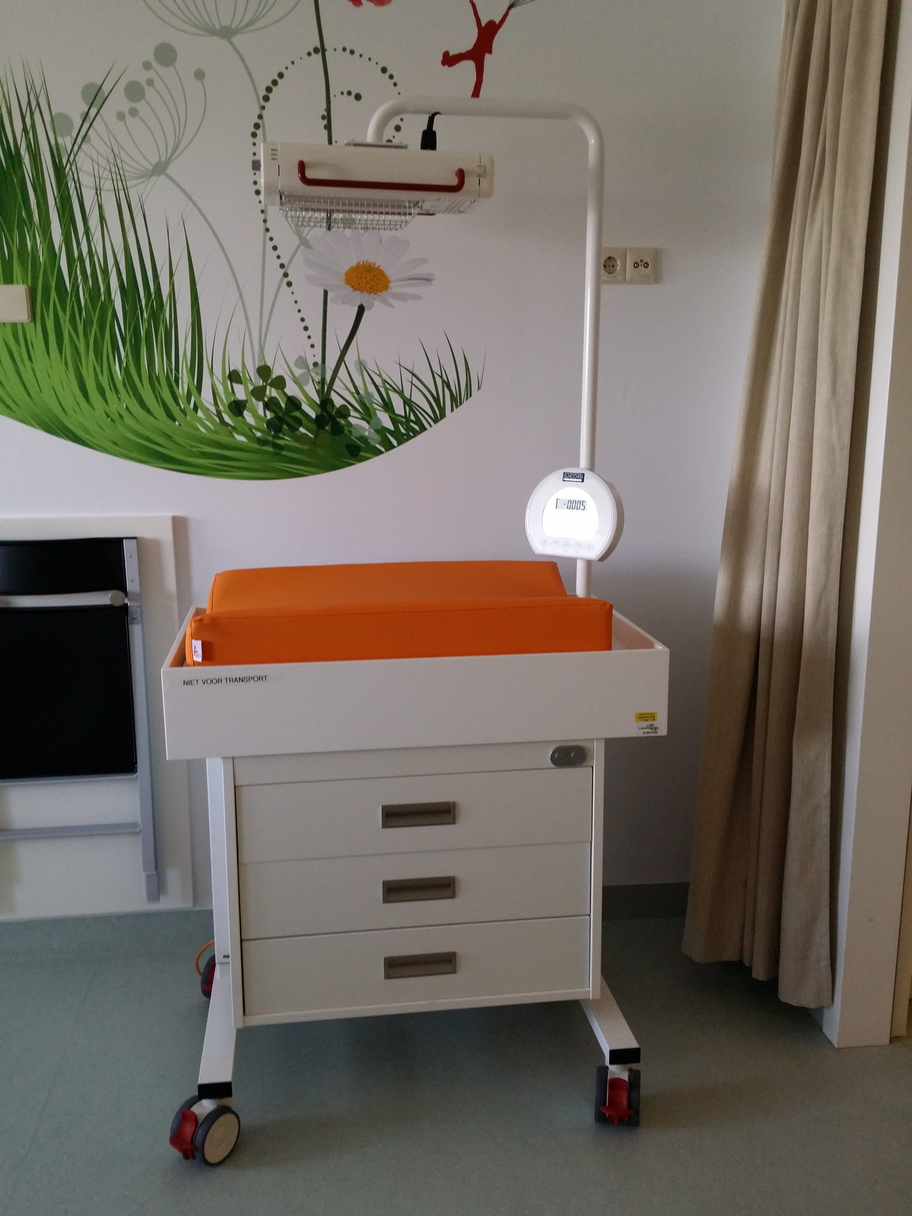 Vanuit het Leids Universitair Medisch Centrum kwam de vraag of de Mobydress met weegfunctie ook uitgerust kon worden met een warmtelamp. Afgelopen maand zijn de zestien commodes, inclusief warmtelamp, afgeleverd in Leiden. De warmtelamp beweegt mee met de hoog-laagverstelling van de commode, zodat er altijd een veilige afstand tussen de lamp en het kindje blijft. Het risico op verbranding blijft dus beperkt.